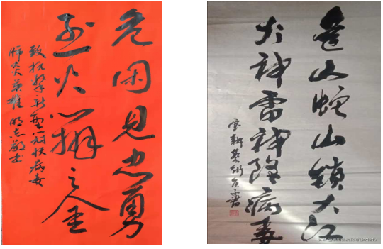 以上是他发的帖子,以下是宜城美术家、书法家协会主席为他题写的美术、书法作品。