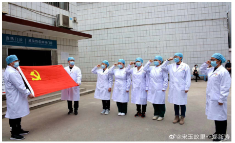 ○《辽宁援宜医疗队又有五名队员入党》3月16日下午,辽宁支援湖北宜城医疗队5名医疗队员在医疗队分队长、辽宁省人民医院副院长朱芳的领誓下宣誓入党,成为中国共产党预备党员。此前,该医疗队已有2名队员“火线”入党。(图文/郑新涛)
