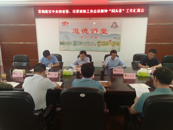 座谈会上,宜城市政协主席李源汇报了落实中央、省委和襄阳市委政协工作会议精神"回头看"情况。