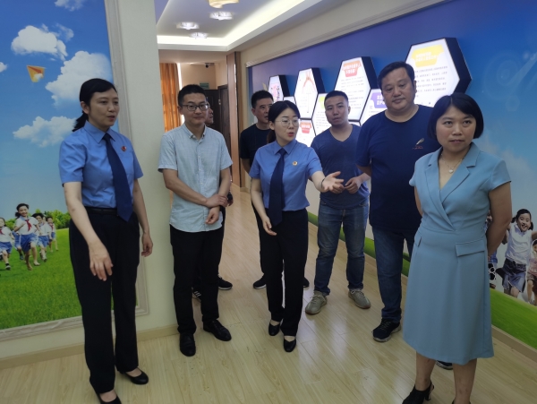 赵彬一行先后来到检察院12309检察服务中心、案管大厅、远程视频接访室、律师接待室、未检工作室和党建活动室进行实地察看,详细了解市检察院上半年工作开展情况。