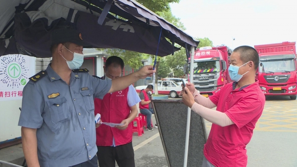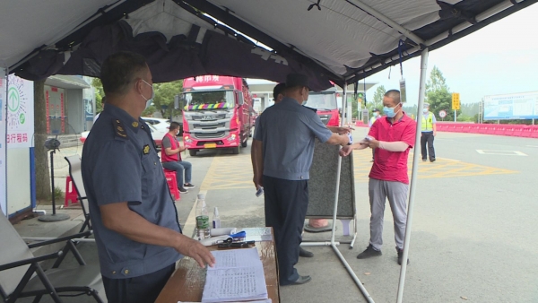 8月10日,记者在207国道孔湾镇台子岗村检查点、雷河镇基层防控点看到,交通专班执勤人员正忙着指挥货车缓行、拦停,查验健康码、行程码,并引导过往车辆司乘人员到指定地点进行登记消毒。