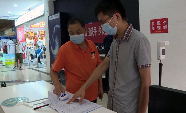 “上次督查发现的问题有没有整改彻底?是不是逐项落实到位?”市城区防控工作专班再次走进部分商场、超市、小区,对前期督查工作中反馈问题的整改落实情况进行检查。每到一地,检查组通过现场查看、查阅资料等方式重点对各地正确佩戴口罩,做好日常清洁、消毒等防控措施,对进出人员采取体温检测、查看健康码等措施进行检查。