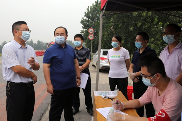 本网讯记者李勤 周波报道:8月11日,宜城市委书记武义泉到河西部分乡镇,检查督导疫情防控工作。武义泉强调,要贯彻落实中央、省和襄阳市关于疫情防控工作的重要指示精神,落实落细各项防控措施,严防死守坚决堵住外来疫情输入,坚决打赢疫情防控阻击战。