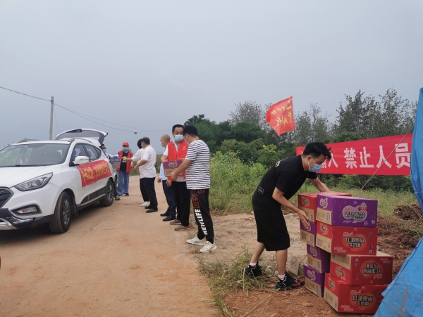 中核优赛一行先后来到刘猴镇团山村、邓冲村、新垱村重要疫情防控点,将矿泉水、方便面、八宝粥、饼干等各40箱物资送到坚守在疫情防控一线的工作人员手中,用实际行动为打赢这场疫情阻击战贡献出自己的一份力量。
