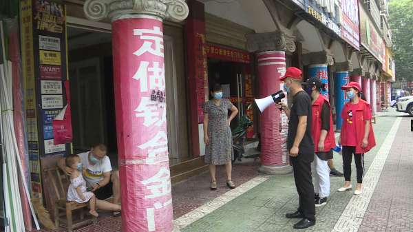 “把口罩戴上”“不要聚集,不要扎堆” “所有适龄人员主动接种疫苗,请大家相互监督”“防疫人人有责”……8月11日,自忠路、宜城大道、紫阳观路、一阳街小广场上,多名志愿者拿着小喇叭,宣传疫情防控措施,劝导行人戴口罩、不扎堆、不聚集。