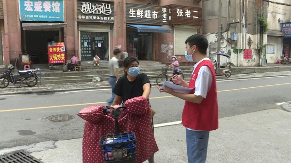 青年志愿者王文豪是其中一员,他在去年疫情期间就当过志愿者,今年疫情形式严峻后就第一时间报名了。“我是一名青年志愿者,也是一名党员,今天在这里主要劝导行人戴口罩,然后做一些防疫摸排的工作。作为一名党员的话,我想走在群众的前面,做好带头作用。”王文豪说道。