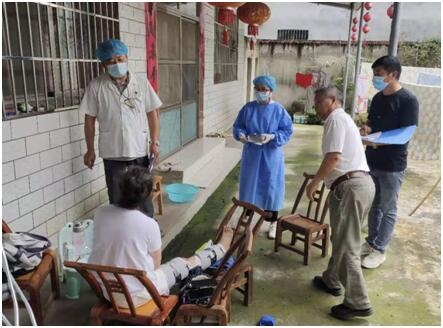 8月24日上午,在廖河村十组,医生主动上门为由于腿严重摔伤、行动不便的村民周祥娥接种了第一针新冠疫苗。“感谢医生、护士为我接种,政府没有忘记我们,打了疫苗我们也放心多了!”对于接种小分队的上门服务周祥娥十分感谢。