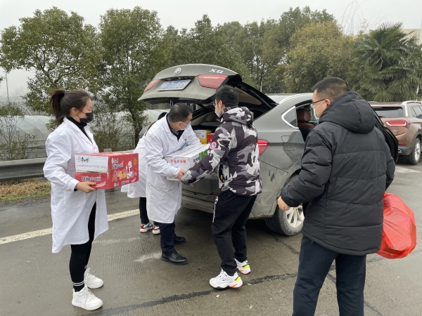 当天下午,市工商联和爱心人士余彬一行,带着方便面、火腿肠、矿泉水等物品,来到宜城北高速出入口,慰问交警、核酸检测工作人员、志愿者等奋战在一线的防疫工作人员,并现场为他们做健康体检,告知注意事项,叮嘱他们在工作的同时,一定要保重身体。