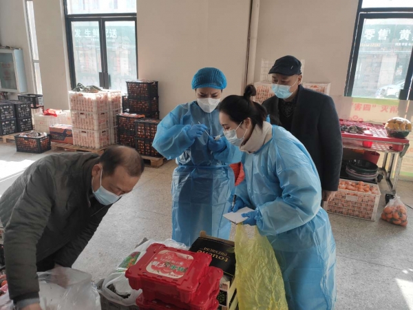 本网讯记者向杰廷 通讯员赵晨科 匡锐锋 龚雯雯报道:"请大家排好队,来做核酸检测。"3月9日一大早,宜城市市场监管局工作人员和市疾控中心医护人员就来到中农联鄂西北华农城,为进口水果经营主体开展上门核酸检测工作。