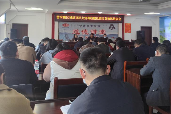3月10日上午,雷河镇举行全民核酸检测应急演练。为做好此次应急演练,9日上午,雷河政府组织开展了“雷河镇区域新冠肺炎病毒核酸检测应急演练培训会”,镇卫生院以及镇村干部共计60多人参加培训会。镇卫生院院长和相关医生为大家做了现场示范和详细讲解。