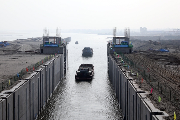 本网讯记者李勤 谢丛阳通讯员王向锋报道:1月12日12时28分,伴随着船舶汽笛长鸣,两艘货船顺利驶出雅口航运枢纽船闸,标志着雅口航运枢纽船闸通航成功。湖北港航管理局局长王阳红、襄阳市副市长李德璋和宜城市委书记郭静、市委副书记郭文强参加通航仪式。
