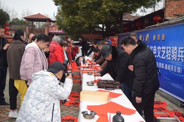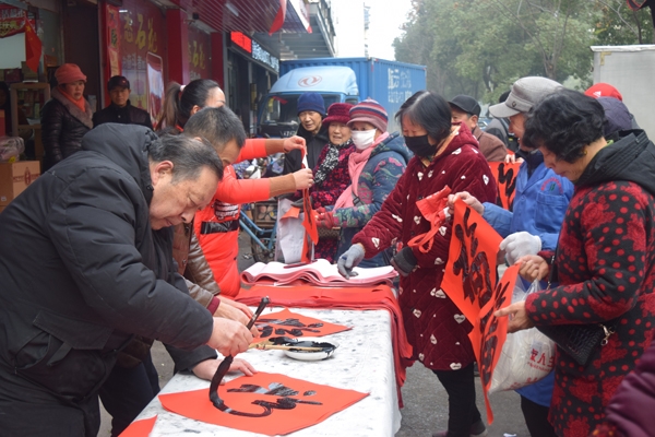 本网讯记者李明磊 向杰廷报道:1月12日,宜城市文联、书法家协会组织书法家,在城区开展红色文艺轻骑兵送祝福送对联活动。