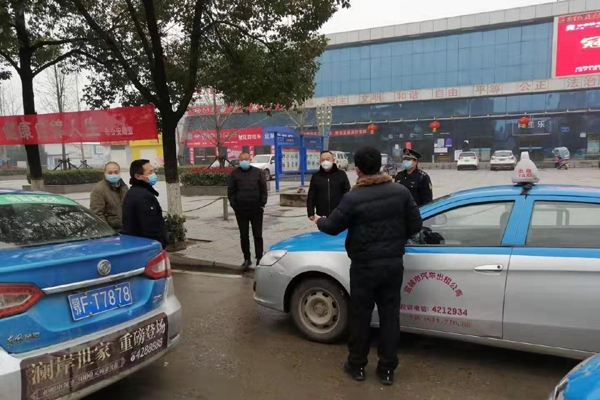 1月25日上午,客管所执法人员在客运中心站向出租车驾驶员宣传疫病防治知识,要求驾驶员提高防范意识。