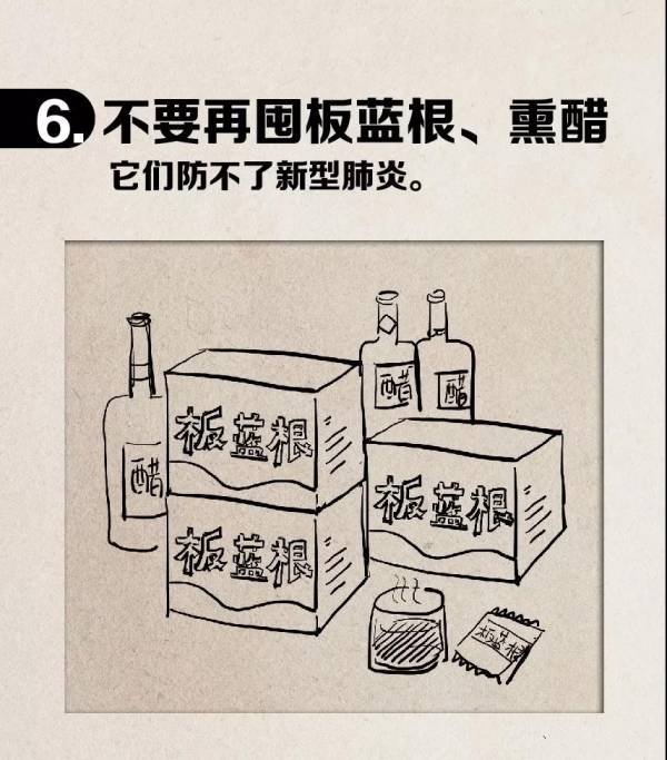 和平里医院呼吸科主任医师张骅称:板蓝根适用于风热感冒、病毒性感冒等热性疾病的治疗,有一定的抗病毒效果,但是对冠状病毒是不可能有效的。熏醋,所含醋酸本身浓度就很低,根本达不到杀菌消毒的效果。
