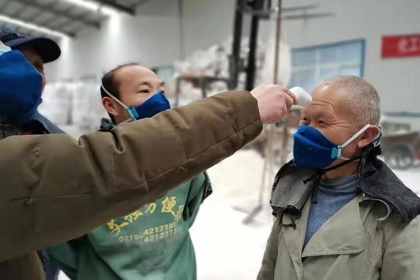 1月27日,晶鑫水晶玻璃公司采取环境喷雾消毒、适时测量体温、上岗佩戴口罩等措施加强疫情防控。