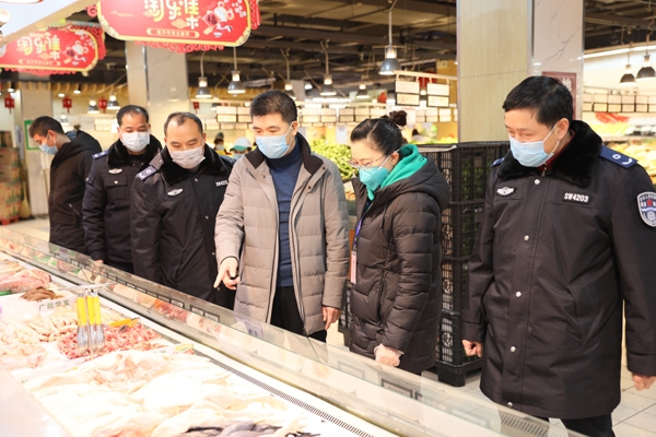 商务部门检查春节物资供应及疫情防控落实情况