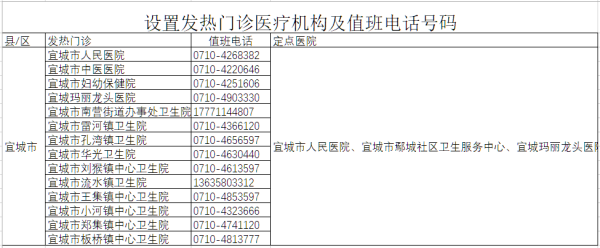 宜城市发热门诊医疗机构及值班电话公布