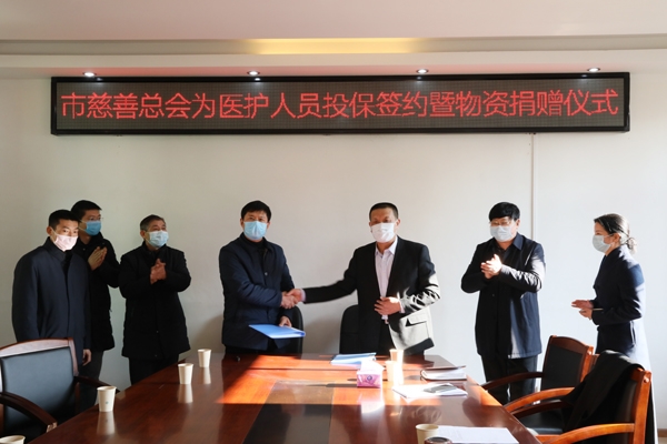 本网讯记者李勤 易振波报道:1月30日,宜城慈善总会举办为医护人员投保签约暨物资捐赠仪式,1688名奋战在抗击疫情一线的医护人员获赠新型冠状病毒感染的肺炎疫情专属健康保险和医用口罩10万只、防护镜350个、防护衣40件。