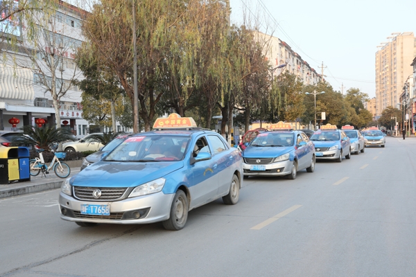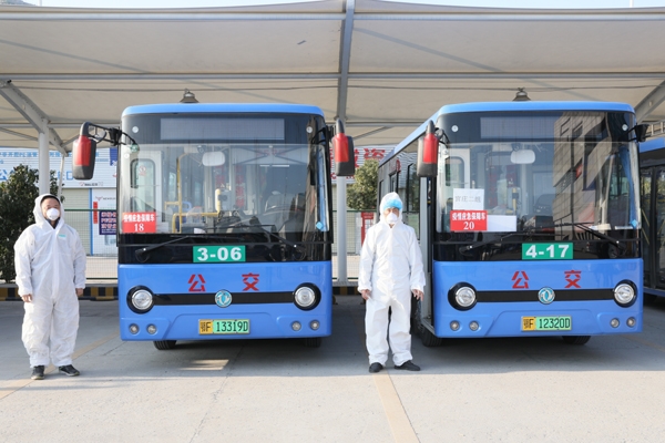 1月30日,记者在顺达运输公司看到,一辆辆张贴应急保障的的士、纯电动公交车整齐排放,司机们整装待发,精神抖擞,随时听从指挥。