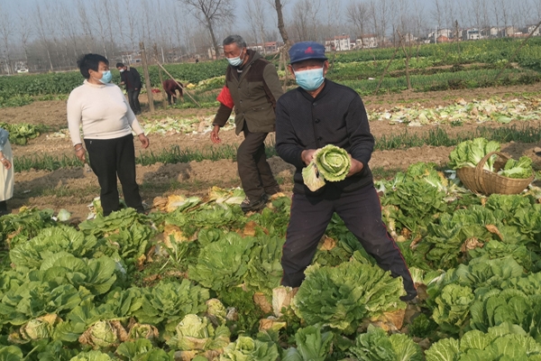2月23日,前锋村委会协调村干部帮忙采摘和运输蔬菜,老张将1000斤大白菜捐献到了雷河镇卫生院和雷河镇派出所。