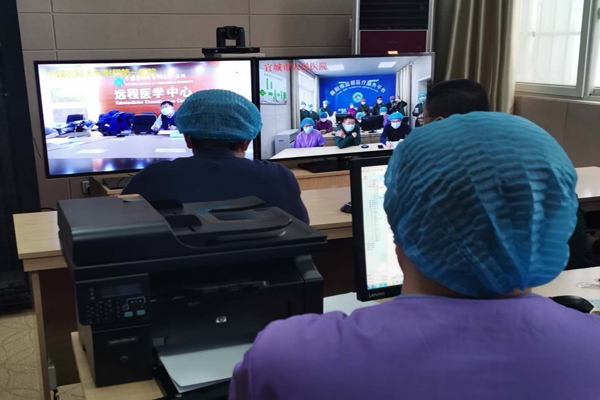本网讯通讯员龙彩葆报道:为更好地利用辽宁援宜医疗队资源,最大程度发挥远程会诊平台在疑难、重症、危重症患者诊治过程中的指导作用,2月24日上午10点,经市卫健局协调,市人民医院与中国医科大学附属第一医院暨辽宁省人民医院通过2019年底建成的远程会诊平台,在襄阳市率先与辽宁省平台完成一例远程会诊。