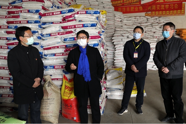 郭静先后到流水镇落花潭西瓜育苗基地、南营办事处南洲村化肥直营店等地,深入田间地头、村组农户,详细了解各地疫情防控、春耕生产、产业规划、农资配送等情况。