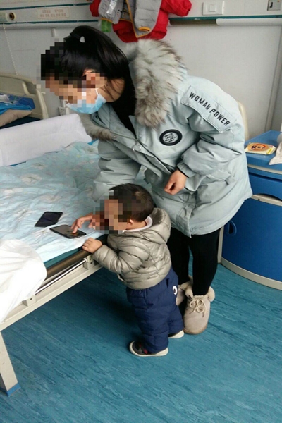 由于已提前接到抗疫工作群的通知,当班医护人员已经做好接诊准备。透过厚重的防护面屏,看着因发热而双颊通红的患儿,大家深知抓紧收治才是对他们最好的保护。了解得知:这对母子是典型的输入性家庭聚集引发病毒感染。一家四口从武汉返乡过年,孩子的外婆和爸爸均出现发热现象,外婆已确诊,爸爸在隔离,1岁零2个月的幼儿感染尚属罕见。