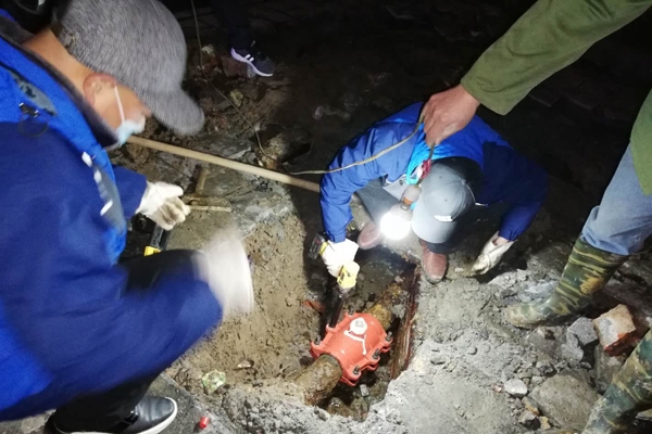 考虑到目前正值疫情防控的关键时期,供水抢修专班决定特殊情况特殊对待,从下午2点开始排查,在4点20分查找到铸铁管道断裂处。经过一个多小时的抢修,在当天晚上7点恢复了供水。