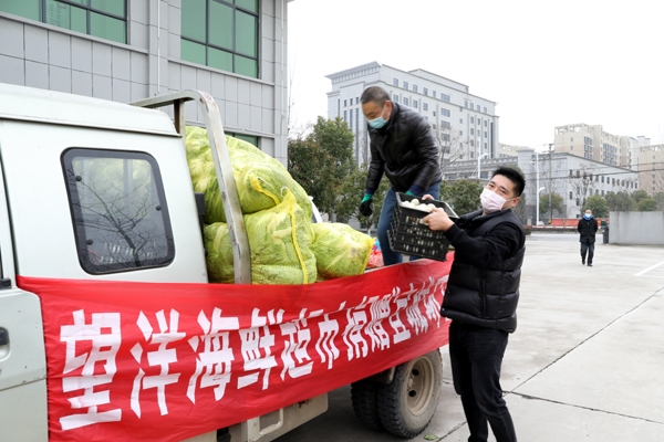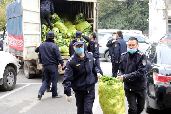神州行海鲜烧烤店和望洋海鲜超市两家爱心企业为了表示对城管一线工作人员的关心关爱,将价值1.5万斤蔬菜和35筐鸭蛋送到坚守在疫情防控一线的工作人员手中,用实际行动向所有坚守在抗击疫情一线城管人员致敬。