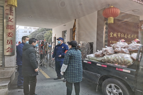 本网讯通讯员徐成丞记者刘毅 钟军报道:3月5日上午,襄阳市“119党员突击队”先后来到宜城市社会福利院和市光荣院,看望慰问孤寡老人,为他们免费送上1000多斤“爱心蔬菜”。