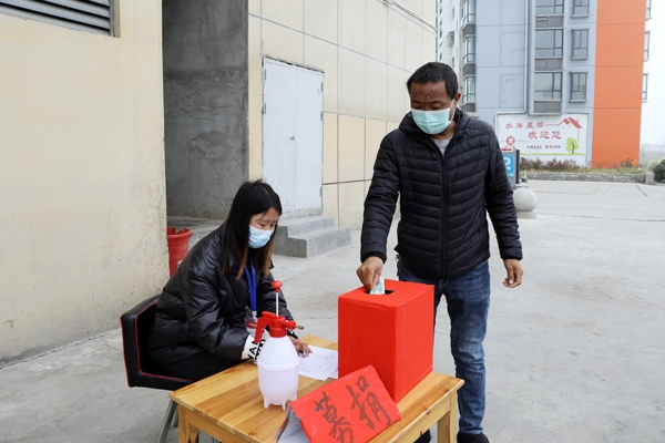 据宋玉社区工作人员介绍,3月6日,社区组织党员捐款,把桌子放到门口以后,不少居民踊跃参与,捐款表达爱心,用实际行动助力疫情防控。