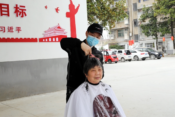 黄希奎说:“因为疫情,大家都很久没有出门了,想利用自己的一技之长为大家免费理发,回报社会。让居民们看起来精神一些,也希望缓解他们长期待在家里面的压力。”