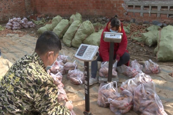 在付衡元家的地窖旁,他与工人们正在忙着分装红薯,每袋都是5斤装的精选红薯,这些红薯将被装车送到城区部门小区居民家中。“感谢爱心人士的爱心接力,把我家滞销的4500斤红薯以高于市场的价格卖出去,我非常感谢。”提起自己红薯的销售经历,付衡元十分感谢,同时他也希望有更多的爱心人士帮助把村里其他农户滞销的红薯卖出去。
