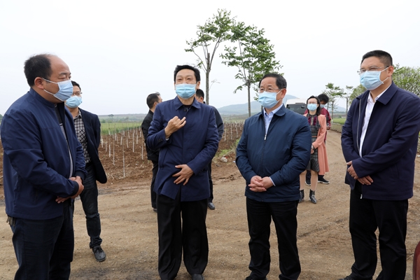 成佳刚一行先后到板桥店镇、南营办事处等地实地查看了荒山育林项目、村庄绿化工程、产业造林项目现场,详细了解绿满宜城再提升行动工作落实情况。