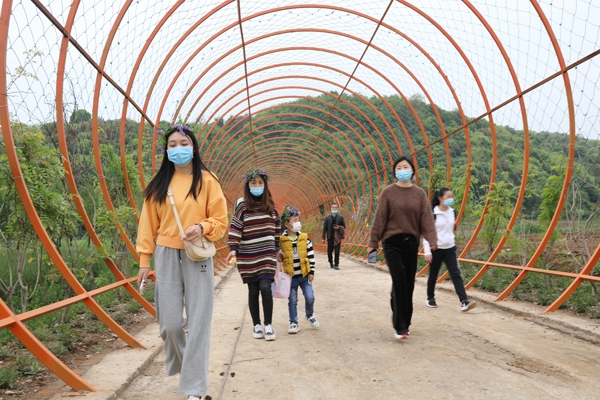 本网讯记者李勤 周波报道:4月22日,虽然不是节假日,记者在小河镇大冲村莱公山谷康养特色小镇看到,三五成群游客纷至沓来,在这里赏花观景、品尝农家饭,漫步在村间小道,尽享田园美景和农家乐趣。