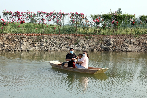 宜城市刘猴镇刘猴柏东津说:“放假到这里玩感觉这里环境特别好,看到五颜六色的月季花,这边还能划船,我们一家人玩得特别开心,下次还会过来玩。”