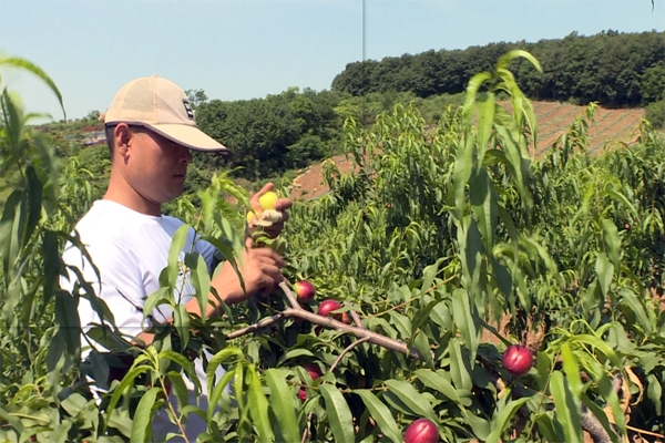 5月22日,记者见到李维虎时,他正在采摘桃子。在10多亩的桃园里,一个个丰满的果实压弯了枝头。丰收在即,李维虎的脸上洋溢着收获的喜悦。