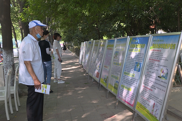 在紫阳观社区文化小广场,工作人员摆放展牌,宣传国家环保政策,向市民讲解大气、水、噪声污染的危害及防治知识。环保志愿者们向过往行人和社区居民发放生态环保宣传资料,并提醒大家:关爱自然、刻不容缓;爱护环境、人人参与、从我做起。