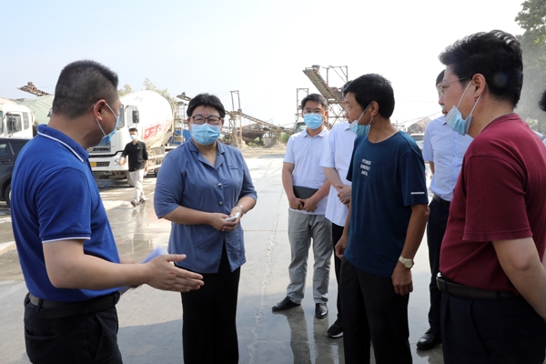 郭静、严广超一行先后实地查看了鄢城办事处华鹏搅拌站、野鸡闸沿江排污口和孔湾镇大为磷化工磷石膏整治情况。