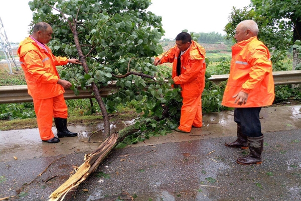 加大雨天养护力度,保障公路畅通。密切关注路面低洼坑槽积水情况,及时清除积水,做好雨天公路养护,对降雨导致的各类泥土、杂物及路面倒伏树干等进行及时清理,消除路面不安全因素,保障公路畅通。