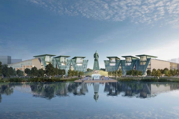 宜城市“四馆两中心”项目位于宜城市鲤鱼湖畔,占地80900平方米,总建筑面积约60050平方米,规划有图书馆、科技与规划展示馆、文化馆、工人文化宫、健身中心、妇女儿童文化中心。目前,项目已完成EPC(工程总承包)招标,计划在2020年10月份开工。项目设计方中国建筑设计研究院的设计团队由中国工程院院士崔愷领衔,曾成功设计北京世界园艺博览会中国馆、海口市民游客中心、兰州市城市规划展览馆等大型场馆。