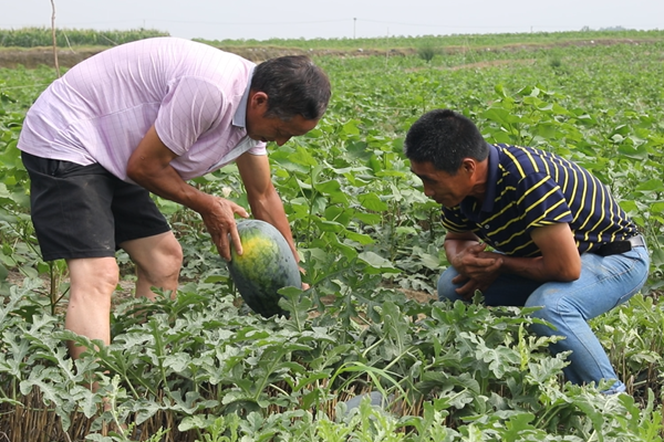 镇村干部的因势利导,产业引领,让余贤红学会了改良土壤和有机种植,西瓜产量、品质都得到了大幅提升,产出的西瓜个头大、口感好、水分足、糖份高,根本不愁卖。余贤红高兴地说说,“今年我家种了10亩田,小麦里套西瓜、套棉花,三茬作物一亩田能收3000多元,一年纯收入3万多元。”