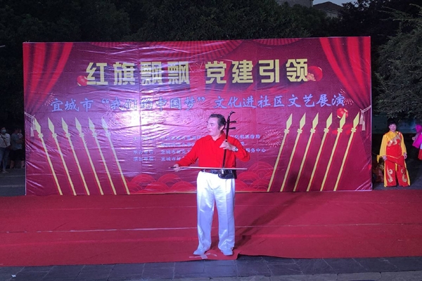 本网讯记者谢丛阳报道:6月19日,宜城市红色轻骑兵文艺小分队走进紫阳观社区,开展“我们的中国梦”文艺演出活动,为社区群众带来了一场精彩的文艺盛宴。