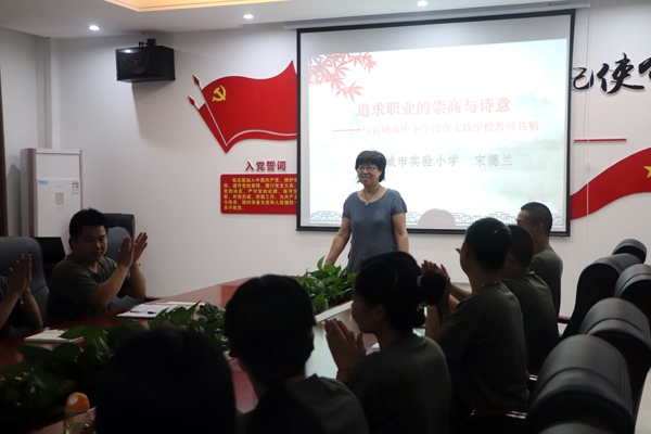 当天,宜城市教研室综合实践活动课教研员代胜围绕《综合实践活动,你准备好了吗?》主题,对参训教官进行动员讲解,并以分组讨论、创新分享等方式,对教官进行实操培训指导;全国模范教师、湖北名师宋德兰以《追求职业的崇高与诗意》为主题,对教官们进行思想培训指导。