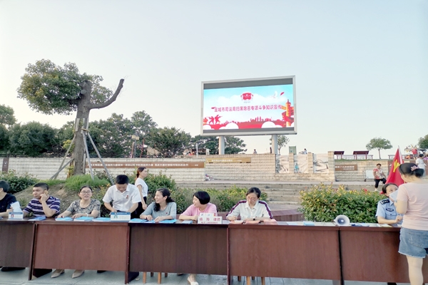 活动现场,宜城司法局精心布置了各类法治知识展板十余块,并同步在万洋洲湿地公园电子大屏幕上滚动播放各类普法宣传片,内容涵盖《民法典》《社区矫正法》,反电信诈骗、法律服务业务、司法鉴定项目和公证项目等内容。同时,现场解答市民涉及法律方面的各类问题。