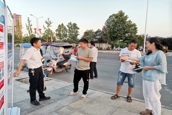本网讯记者刘毅 余倩报道:6月29日,宜城市司法局组织部分执业律师、公证员、司法鉴定人员和社区矫正执行人员,在滨汉大道摆“地摊”,开展“党旗飘扬庆七一 法治宣传润楚都”法治宣传活动。
