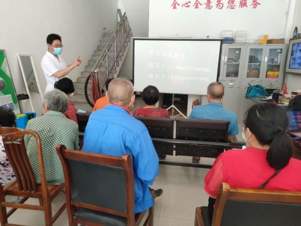 家庭医师引导解读高血压病预防和治疗知识。在公租房物业办公室内,鄢城卫生院家庭医师团队的健康管理师李洁、社区医生鲁静波为前来听讲的居民做起了高血压防治的专题讲座,为居民进行答疑解惑。