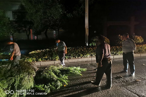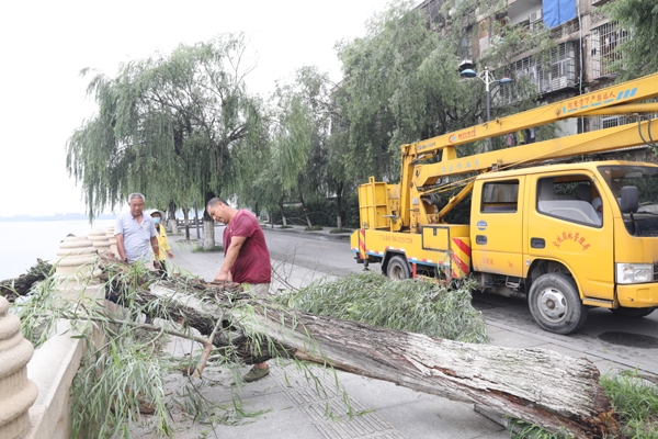 宜城园林局连夜成立抢险突击队,出动60多名园林工人、4台机械,在城区排险除障。目前已清理振兴大道、中华大道、情侣路、紫阳观路行道树70多株,确保了市民上班时段道路畅通。