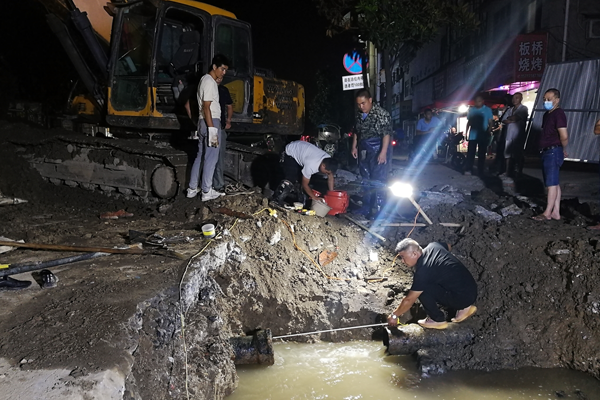 本网讯通讯员雷俊芳记者向杰廷报道:7月7日晚,文昌路一供水管道被挖断,宜城天河供水公司紧急组织人员连夜抢修,确保居民正常用水。