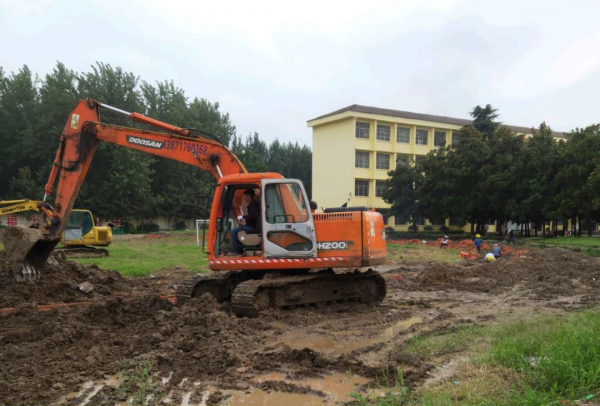 本网讯通讯员张万国 程帆 记者李明磊报道:连日来,宜城国投公司克服持续阴雨天气不利影响,全力推进公司担负的全市38个中小学运动场项目。